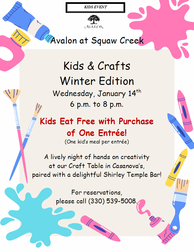 Kids & Crafts Winter Edition Wednesday, January 14th at Squaw Creek