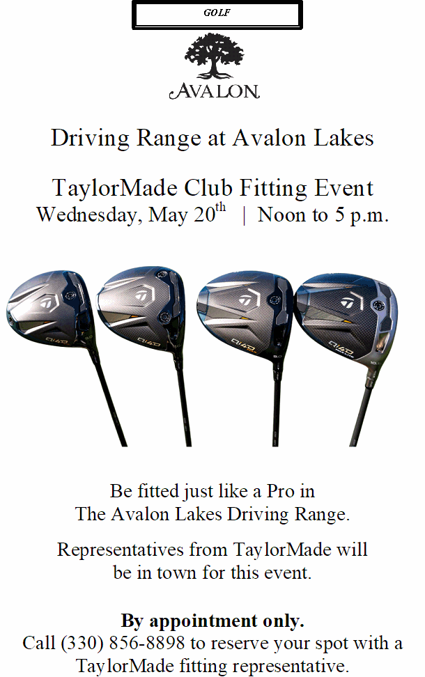 TaylorMade Club Fitting Event May 20th at Avalon Lakes
