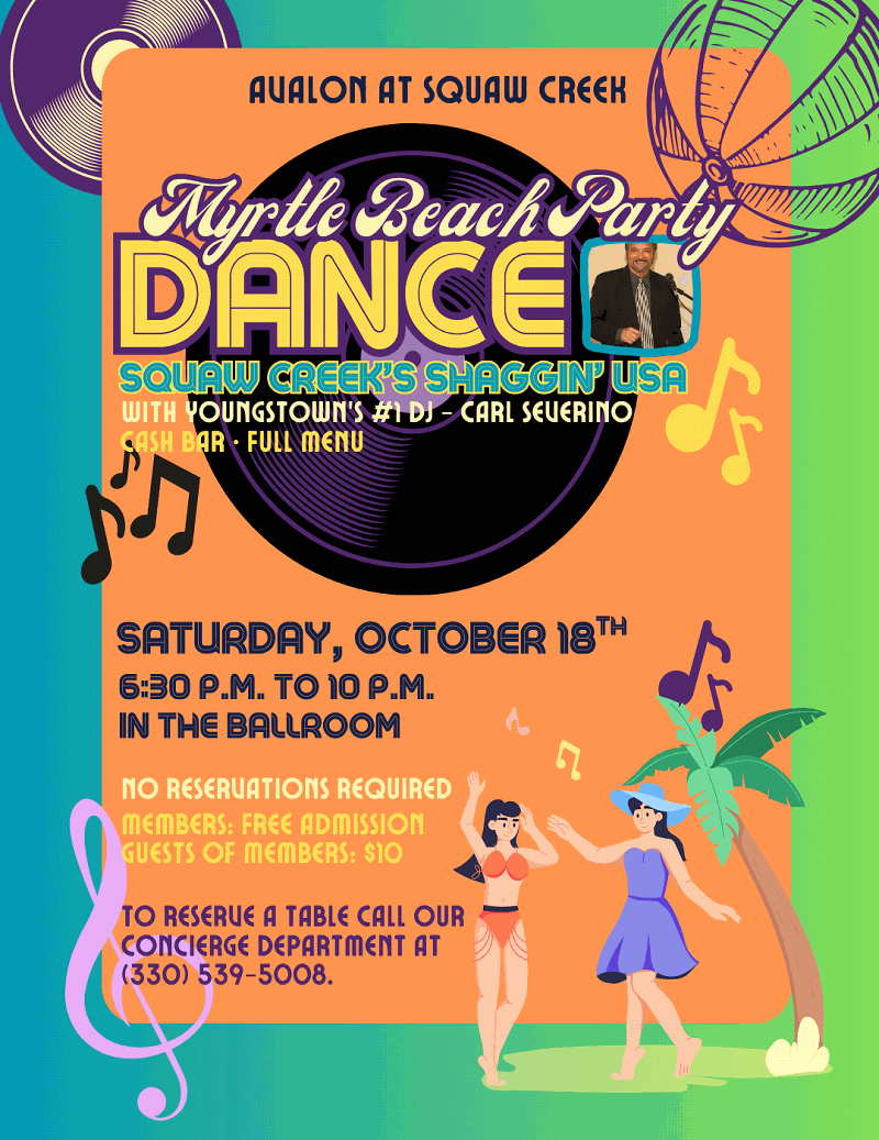 Myrtle Beach Dance Party Saturday, October 18th at Avalon at Squaw Creek
