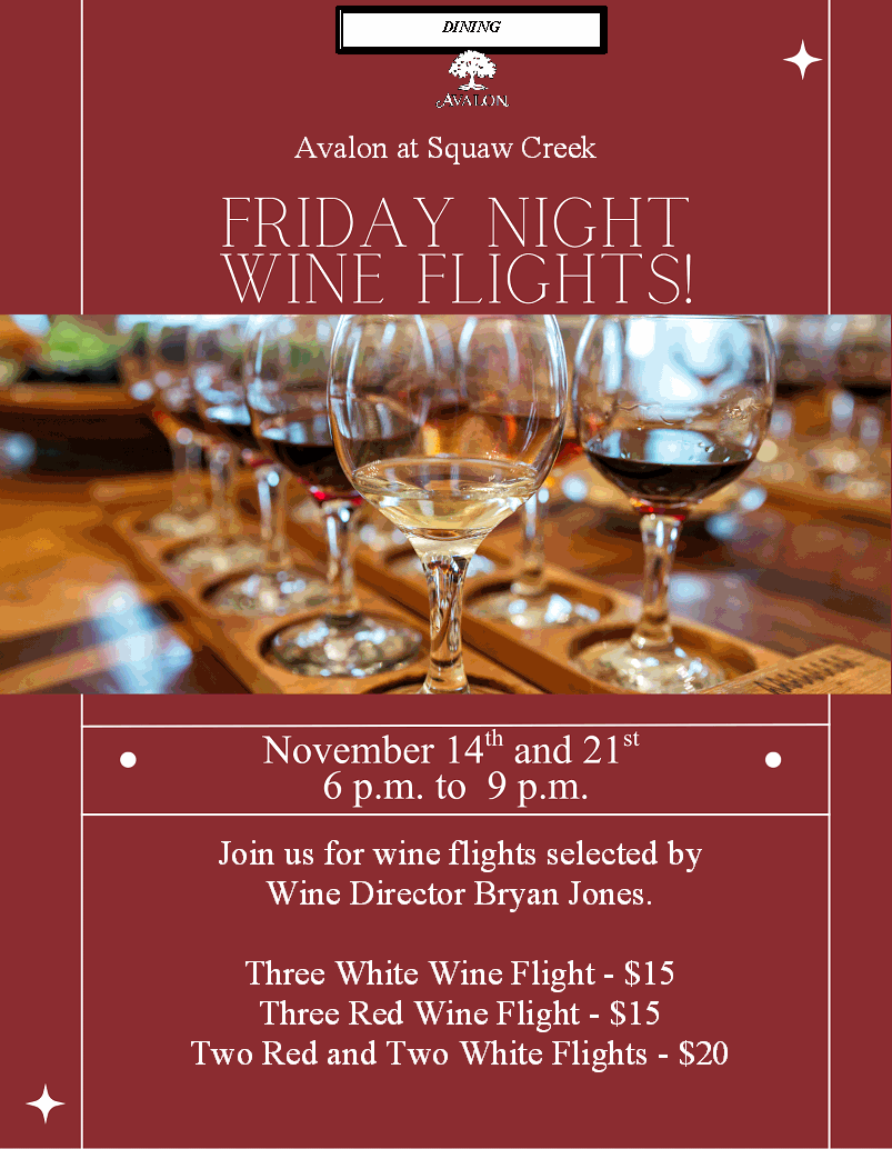 Friday Night Wine Flights November 14th and 21st at Squaw Creek