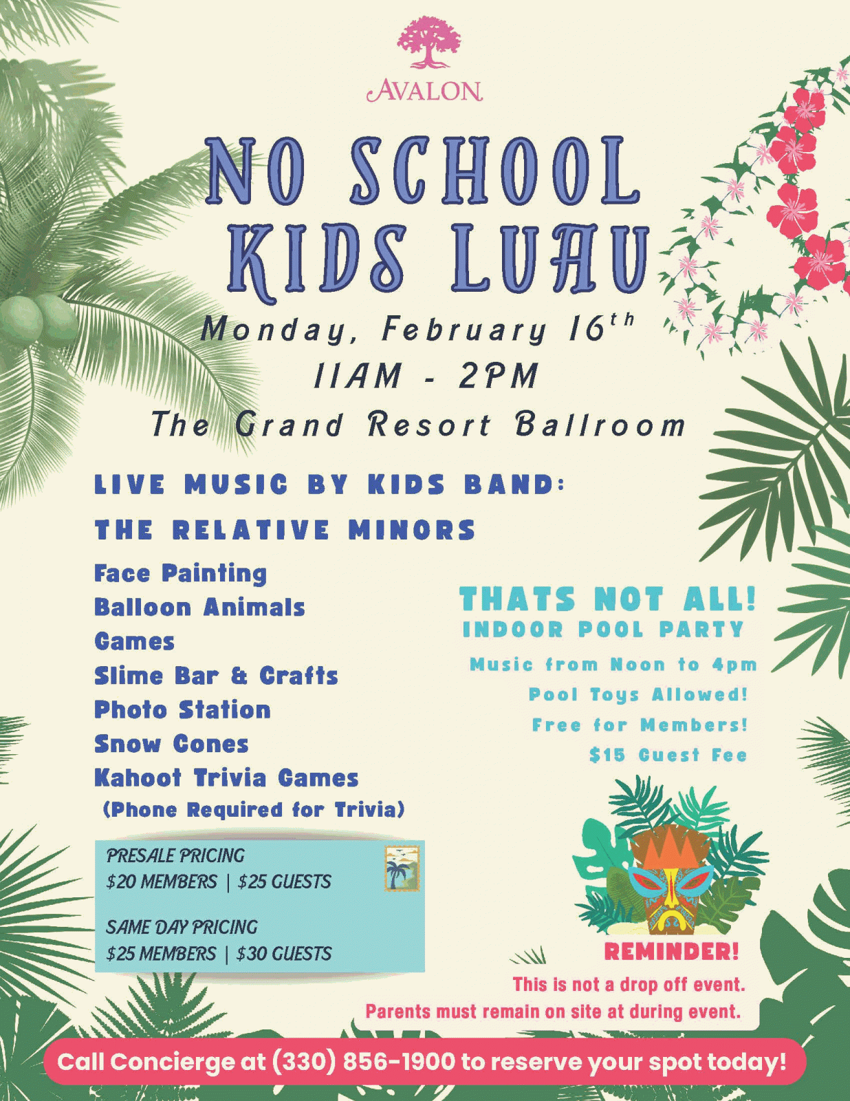 Feb 16 9 No School Kids Luau Monday, February 16th at The Grand Resort By Avalon | Events / Entertainment