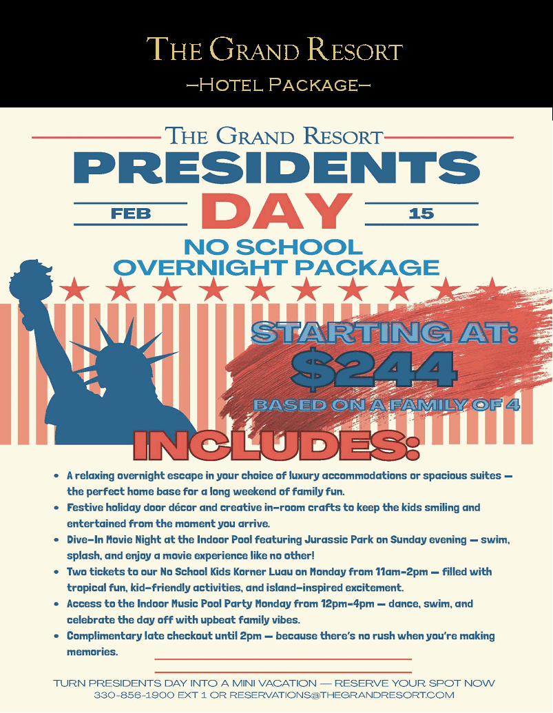 Feb 15 9 Presidents Day No School Overnight Package Sunday, February 15th By Avalon | Accommodations, Events / Entertainment