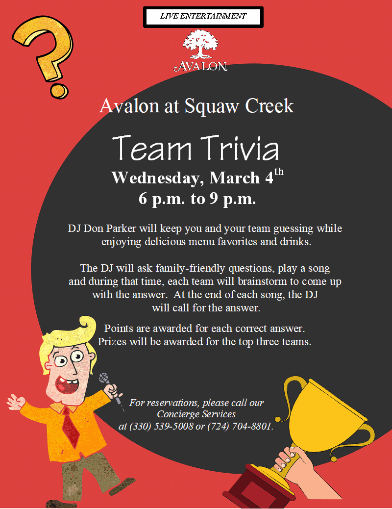 Feb 28 9 Join us Saturday, February 28th for Game Night at Squaw Creek By Avalon | Dining, Events / Entertainment Avalon at Squaw Creek Read More