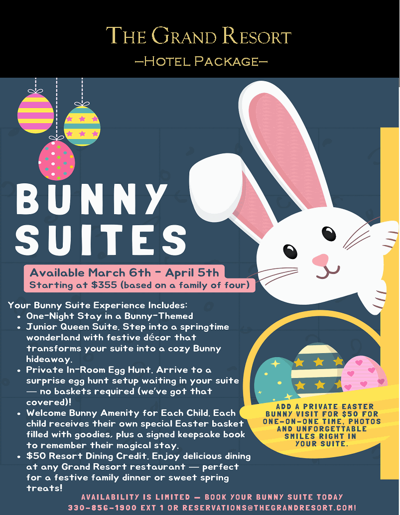 Apr 05 9 Bunny Suites Available March 6th through April 5th at The Grand Resort By Avalon | Accommodations, Dining, Events / Entertainment, Kids Activities / Childcare