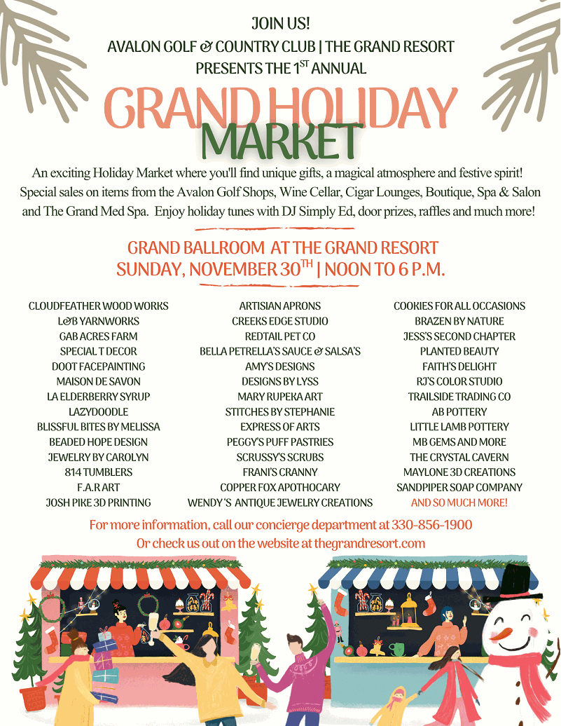 Nov 30 9 Grand Holiday Market Sunday, November 30th at The Grand Resort By Avalon | Cigar, Dining, Events / Entertainment, Golf